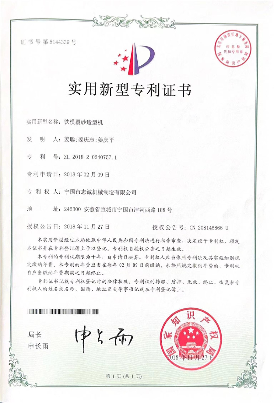 寧國市志誠機械制造有限公司位于安徽省寧國經濟技術開發區創業北路,成立于2008年5月,占地50000平米,是一家集鑄造自動化設備、熱處理自動化設備、鑄造模具研發、制造于一體的民營科技企業。2009年公司加入中國鑄造協會耐磨鑄件分會,被耐磨鑄件分會指定為“耐磨鑄件生產設備研發基地”。公司專業從事鐵模覆砂自動化鑄造生產線、熱處理自動化生產線、澆注機、鑄造模具、環保除塵及煙氣凈化設備的研發、生產與銷售.